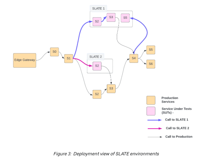 - To test new service versions, an upstream and down stream dependency behavior needs to be prepared ahead of time, and simulated similar to production environments.