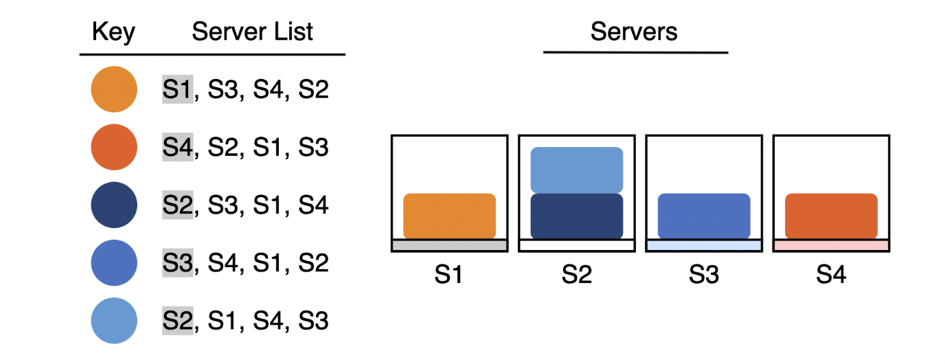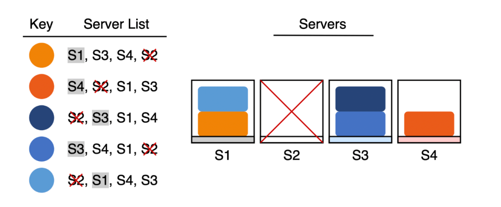 - When adding servers, we need to scan through all the keys to compute the the Highest Random Weight Hashing again in case the new servers suddenly becomes the first priority.