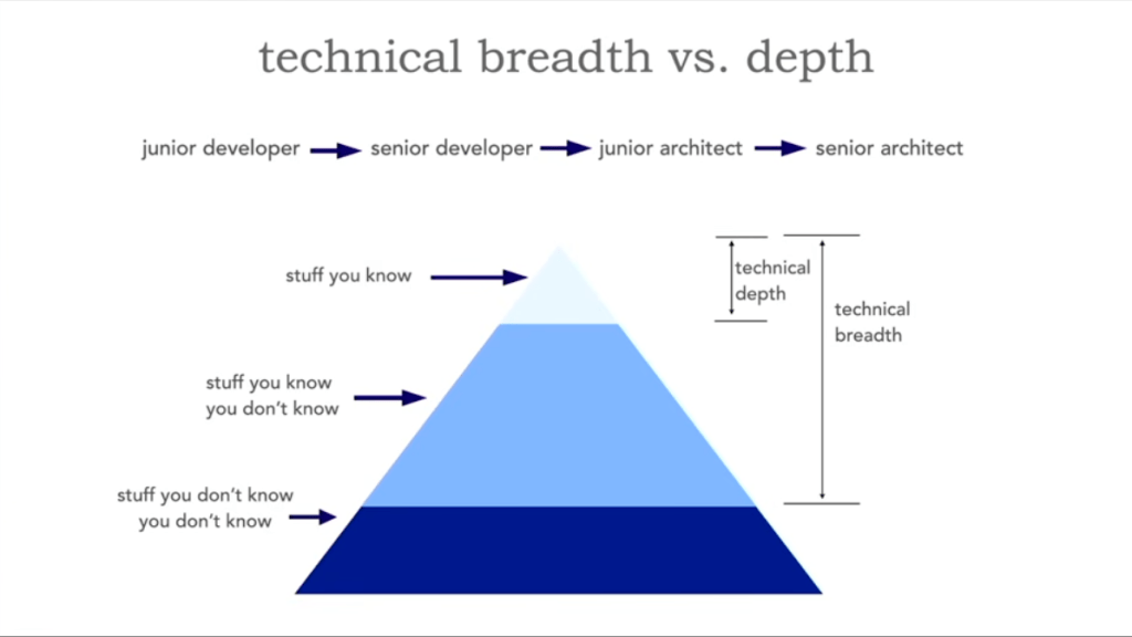There’s a trade off in keeping layer 1 (the stuff you know) in engineering. And that is you need to maintain them. Transitioning from Senior Developer to Junior Architect, requires sacrificing some of the layer 1 technical depth and increasing layer 2 technical breadth. (Unless you don’t have family, relationships, pets, and have all the time in the world)