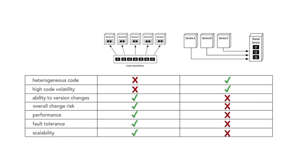 Shared library vs. shared service comparison.